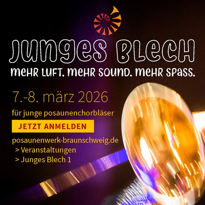 Im März gibt es wieder ein Angebot für junge Posaunenchorbläser. Vom 7. bis 8. März quartiert sich das „Junge Blech" im Gemeindehaus St. Markus in der Braunschweiger Südstadt ein: Gemeinsam Zeit verbringen mit viel Musik, Gemeinschaft, einem Gemeindehaus ganz für die jungen Bläserinnen und Bläser, mit Übernachtung und Auftritt am nächsten Tag.